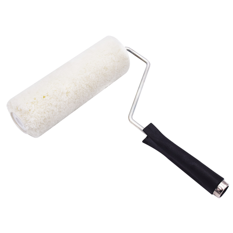 9 인치 순백색 면 롤러 브러시 라텍스 페인트 용 노란색 손잡이 두꺼운 머리카락 죽은 각도 섬유 브러시 페인트